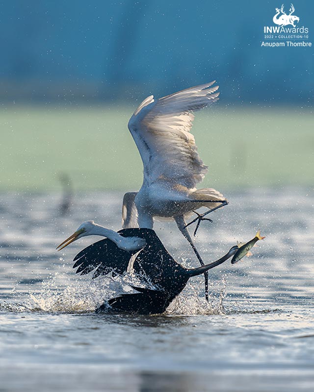 After looking at this frame, I do not specifically need to mention the location. However why I find this freeze special is because of the position of the neck of the great egret between the feathers of the anhinga's wing feathers. Secondly I enjoyed shooting this frame because of the light and drama in the frame. It gives a feeling of Yin Yang in true sense. Also do observe every drop around the eagret's feathers ! EXIF: ISO 200, f3.2, 1/3200 shot at 400mm Equipment details: Sony a1 and FE 400mm f2.8 GM OSS