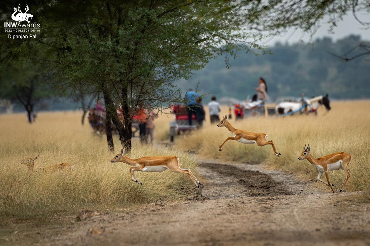 Blackbucks are stotting inside Talchhapar sanctuary. This place is popular for blackbucks and Raptors, but huge people gather on every holiday in car and carriage. The loud sound of their gossiping, deep colours of dresses like Red, make the sanctuary too much disturbed for the animals and the photographers.