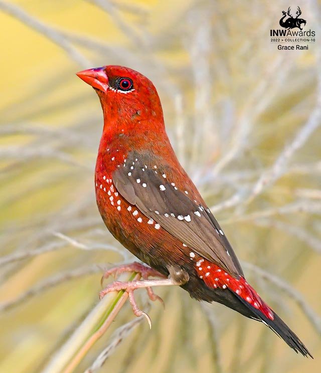 GIVE ME RED !!! Id - Red Munia / Red Avadavat A Beautiful Red Munia on a bright sunny morning. Every time i look at this munia i cannot thank God enough for the beauty he created around us.I wish each one of us could appreciate and protect this beauty.