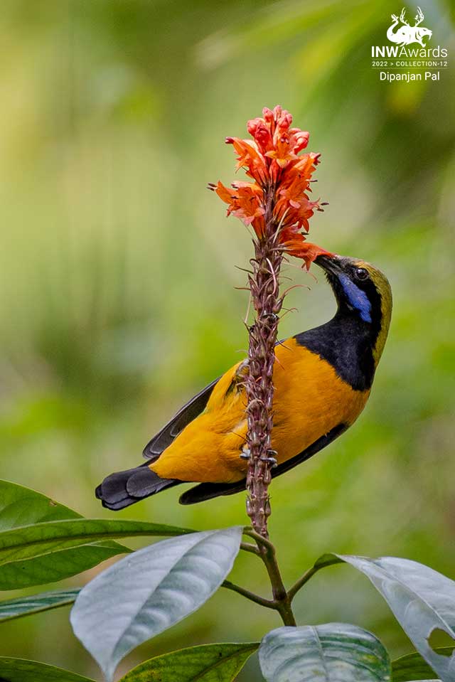 An Orange bellied leaf bird is making its breakfast at Latpanchar, west bengal on a winter morning.