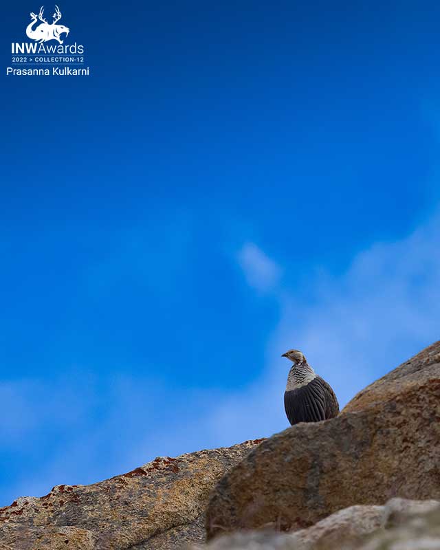 The best view comes after the climb. Himalayan Snowcock on the top against the beautiful morning sky at Changla pass, Ladakh.