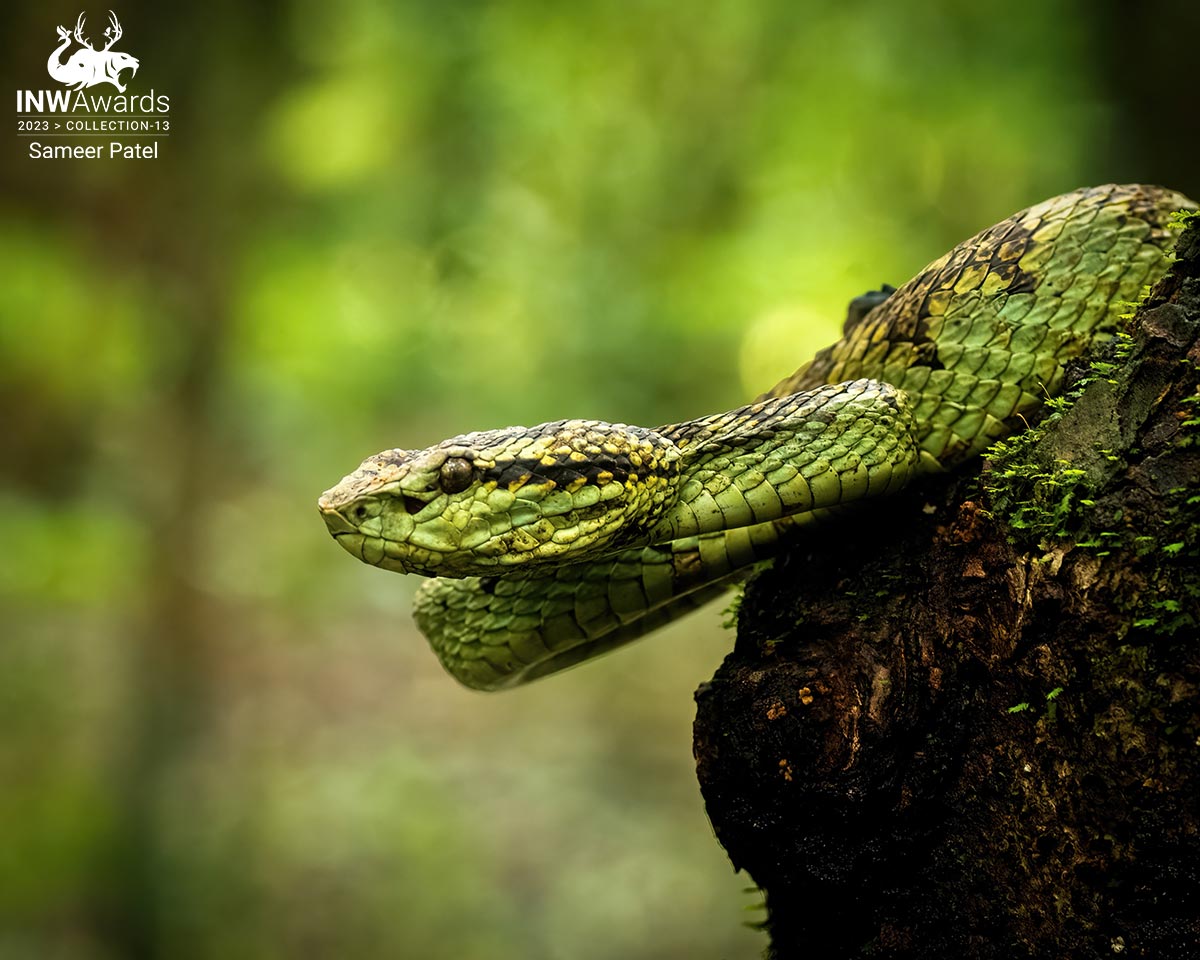 Malabar Pit Viper on the branch of a tree at Amboli, Western Ghats.