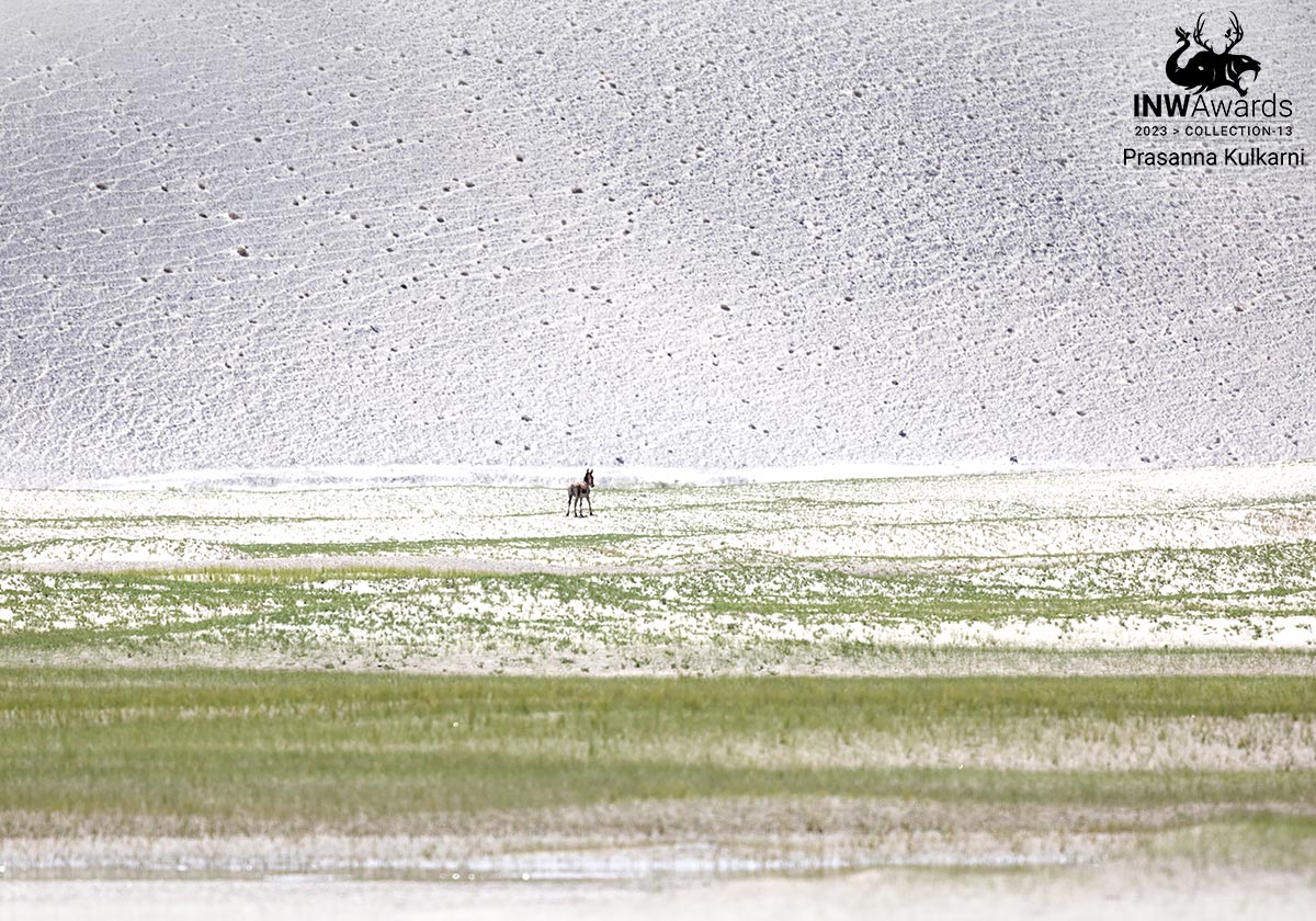 A lone Kiang (Tibetan wild ass) in the middle of a cold dessert. Location: Ladakh