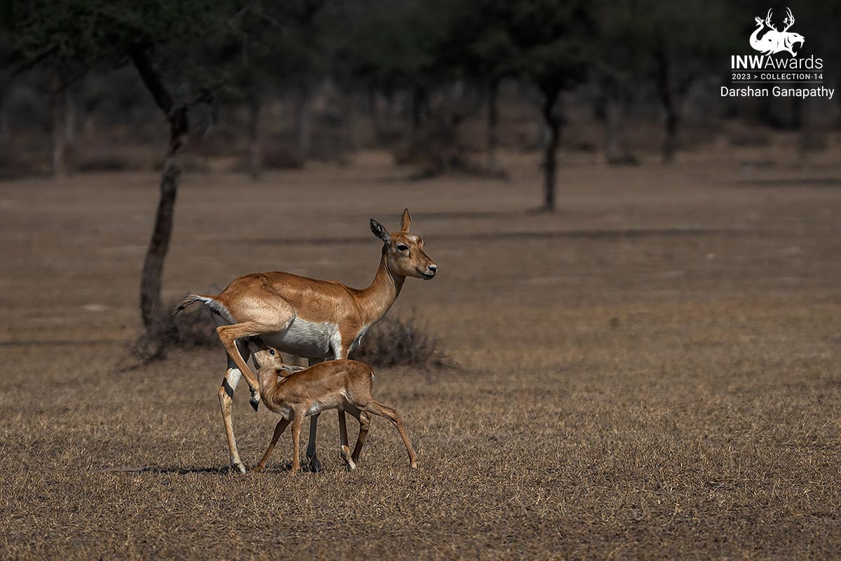 Blackbuck is also known as Indian antelope. It inhabitats grassy plains and lightly foresed areas. The herd of blackbuck consists of an adult male and numerous female. The female blackbucks are very caring and they take care of their young ones with utmost care. This image was shot in Talchapar India.