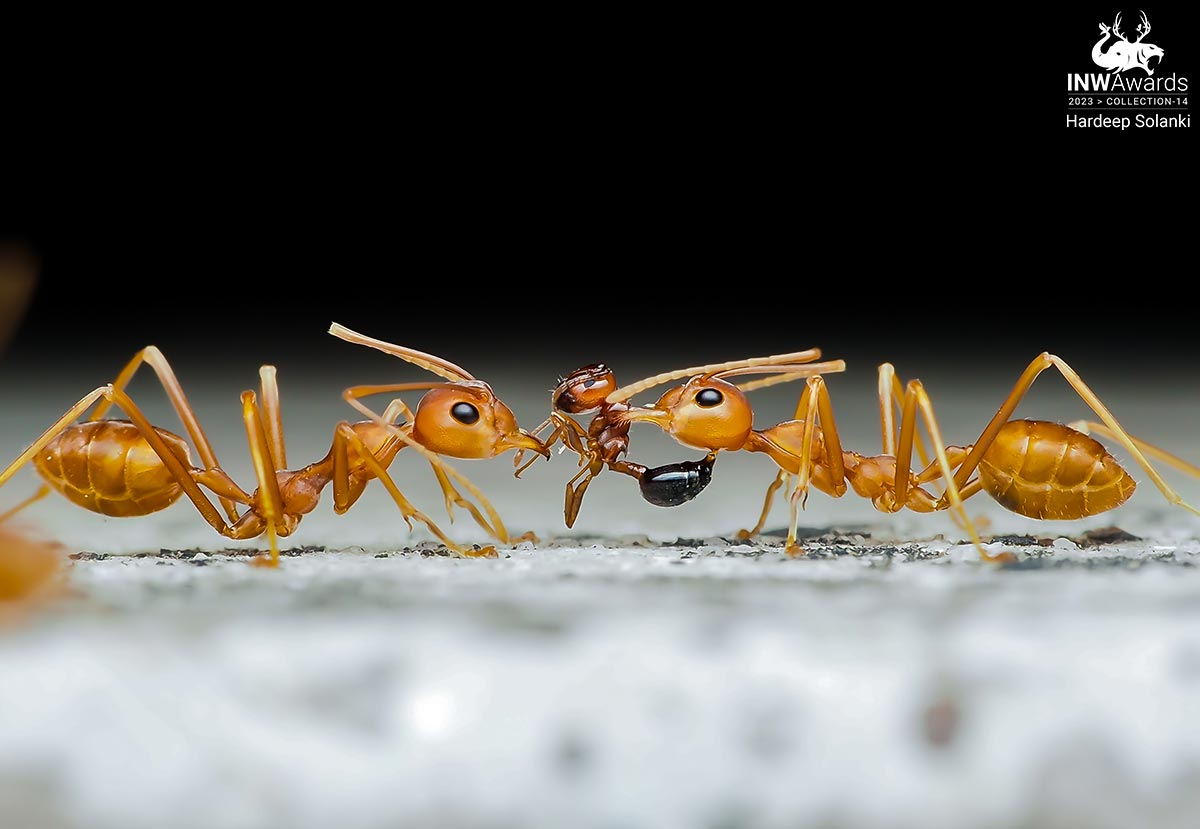 I saw two weaver ants fighting over a small insect. Upon going near I realize it was fire ant they were fighting for. The fire ant strikes back its sting and gave a strong fight for life, but in the end lost to weaver ants.