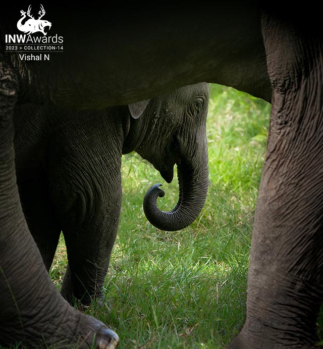 Here's a picture of a mother elephant protecting her calf. I tried to compose it in a different way where the mother elephant's limbs acts as a natural frame