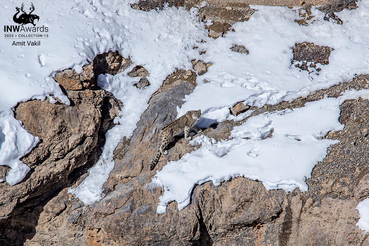 The picture was taken in Kibber Wildlife Sanctuary in Spiti this February 2022. After waiting for almost nine hours in a single spot finally this female snow leopard moves and gave me chance to capture some action. Capturing a snow leopard walking in snow is something I cherished for a long time.