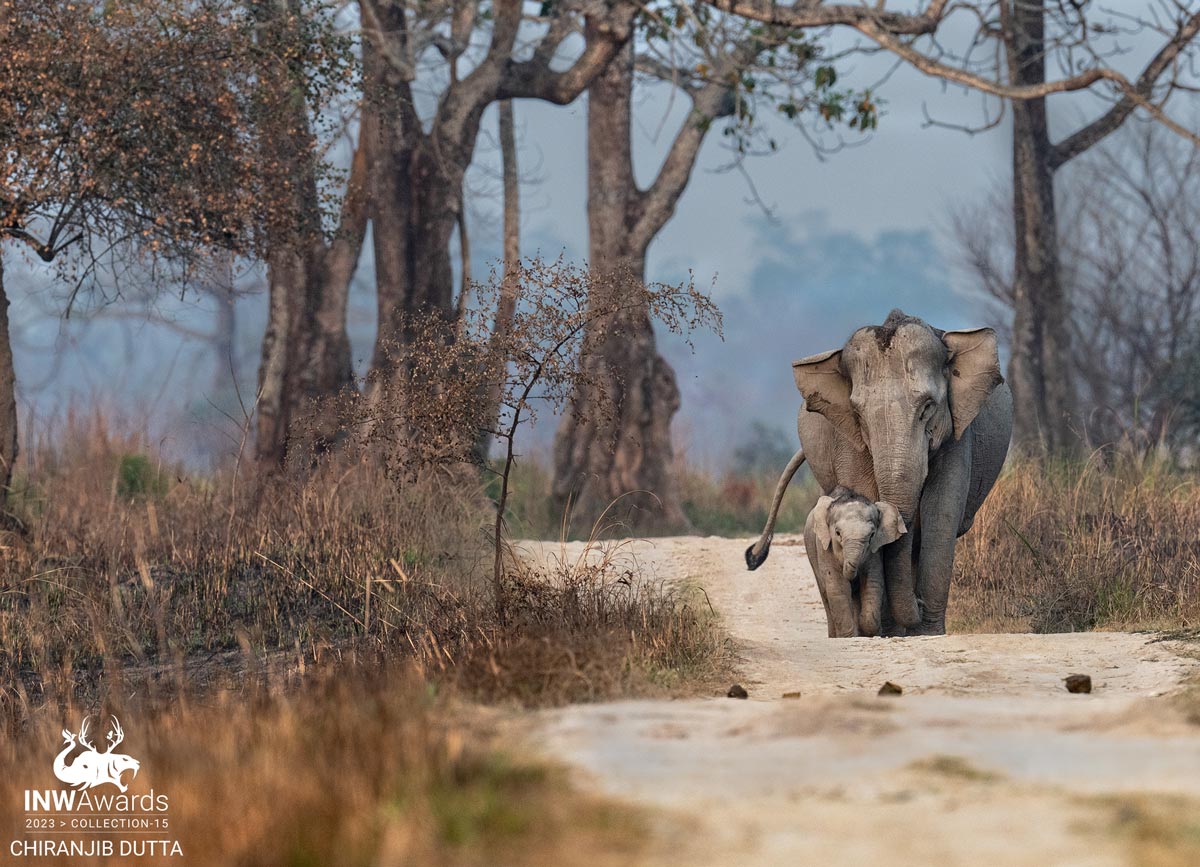 This was taken at Kaziranga National Park, Assam. The herd of elephant was returning , and it was evening, The cub was playful and was not following the matriarch's order, the mother elephant took active care and brought the little one back to the herd.