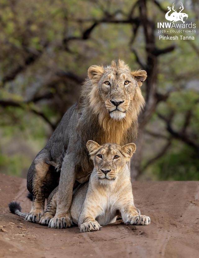 Wild Love of the Lions When lions are courting, lionesses often does the twirling and puzzles his mate by moving away just when the lion is about to mate. Just before the couple was about to mate, they looked towards the grazing deers at a distance giving me a chance to take this shot before engaging in their wild love.