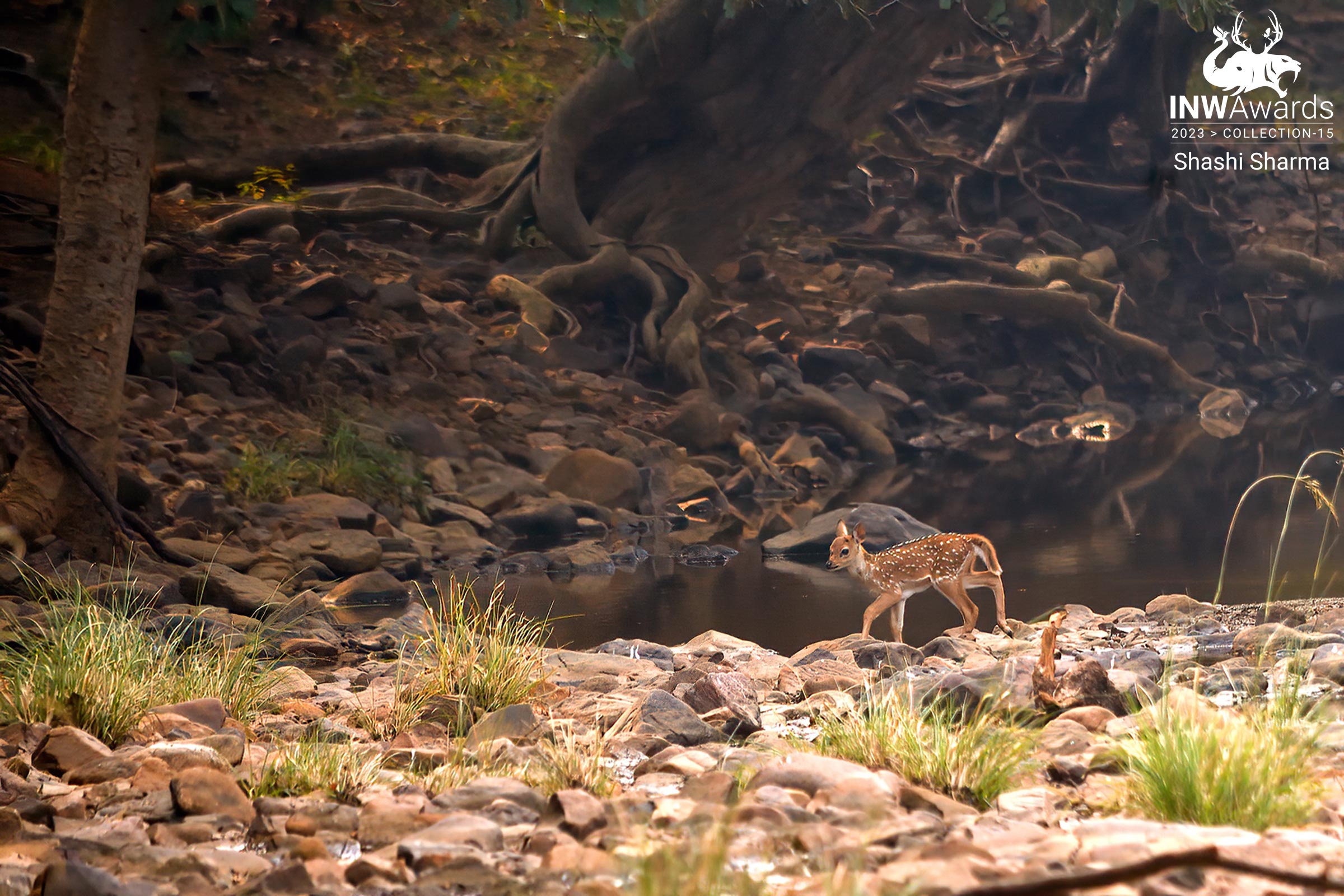 It was heart melting to watch this fawn cross the river stream alone during Ranthambore safari. However I was wondering as to why it's parents would have left it alone despite of the possibilities of falling prey to a tiger any moment. After slowly crossing the drain, he disappeared from my eyes and praying for his safety, I went ahead. I know it was against the laws of nature, but still....