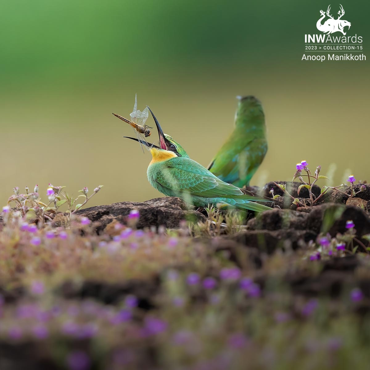 Toss in the meadows! Blue-cheeked Bee Eater at the magical Bhigwan grasslands! Right after the rainy season, parts of the grassland get the beautiful patches of these tiny purple flowers and any frame you shoot there is a photographer's dream!