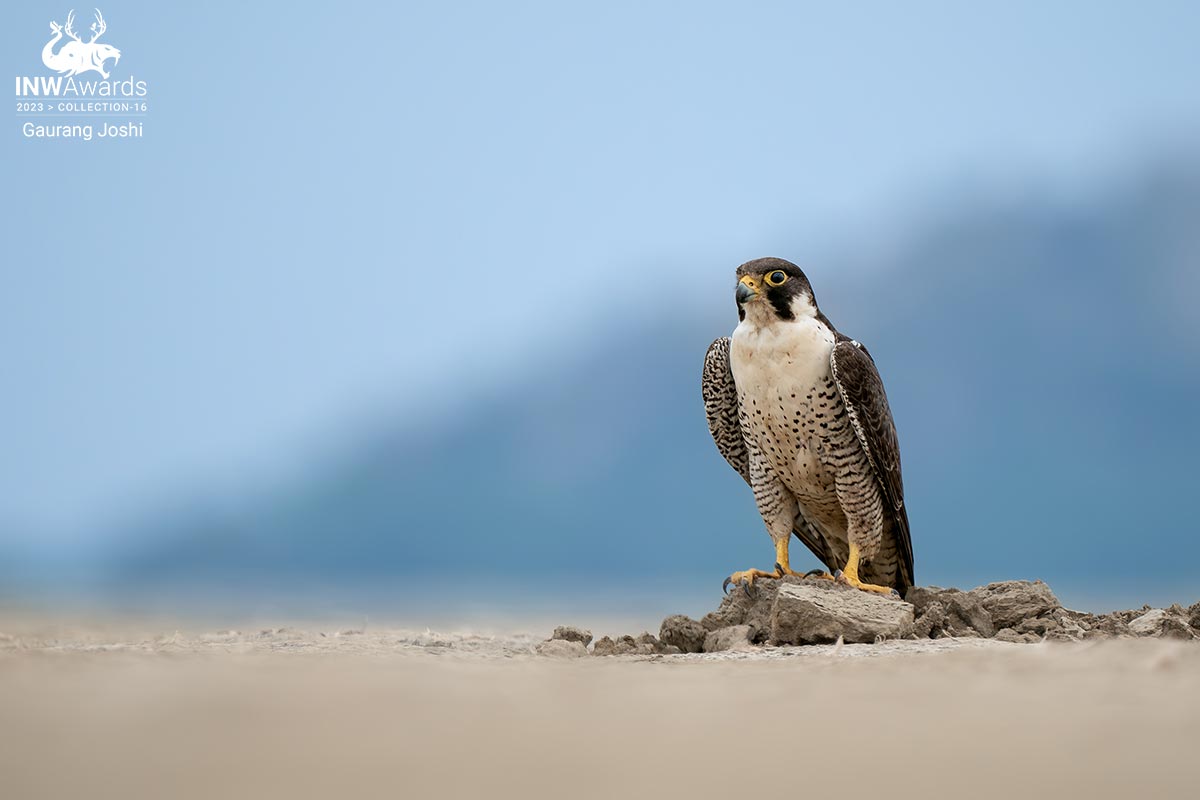 The peregrine is a large and powerful falcon. The Peregrine Falcon is one of the most widespread birds in the world. It is found on all continents except Antarctica, and on many oceanic islands. The speed king, the Peregrine Falcon is a very fast flier, averaging 40-55 km/h in flight and in direct pursuit of prey, the peregrine may reach speeds of 320 km/h as it drops toward its prey. Image captured at Sambhar Lake (AKA Shakambari Jheel) Rajasthan.