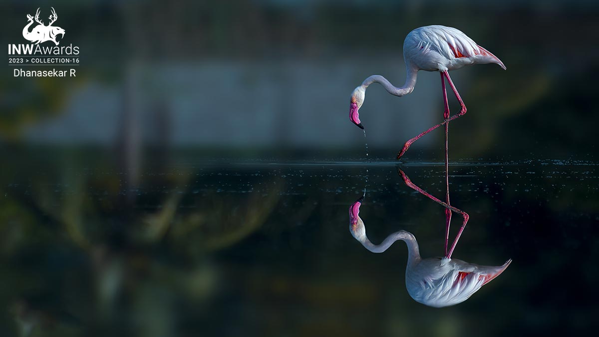"Sometimes we have to speak and listen to our inner self to know ourself better", Flamingo in reflection during feed time, shot taken at Chennai.