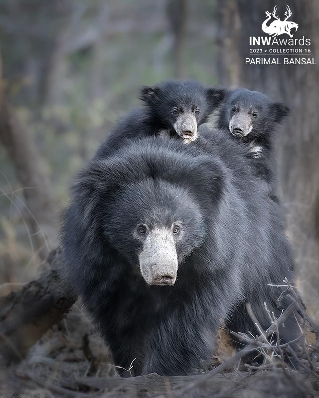 During a summer morning safari in Ranthambore, we spotted a mother and her offspring. The surrounding area was filled with cheetal calls, which led us to investigate. To our surprise, the calls were not for a tiger or leopard, but for a delightful trio of sloth bears. First seven to nine months of their lives, sloth bear cubs are carried on their mother's back. This behavior serves two purposes. The first is to shield the cubs from predators like tigers. In fact, there are reports of mother bears fending off tigers while carrying two cubs on her back. Additionally, it is worth noting that other myrmecophagous mammals, such as the giant anteater, also exhibit this behavior of carrying their young on their backs.