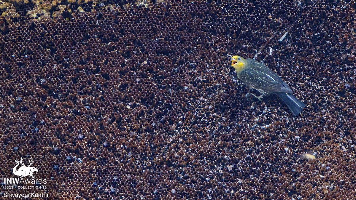 The first time we saw this little beautiful Yellow-Rumped Honeyguide, it kept hopping around the trees. However, during the 2nd sighting, we noticed that there were Honeycombs high up the mountain wall and luckily the bird did go for feeding giving me an opportunity to make this image.