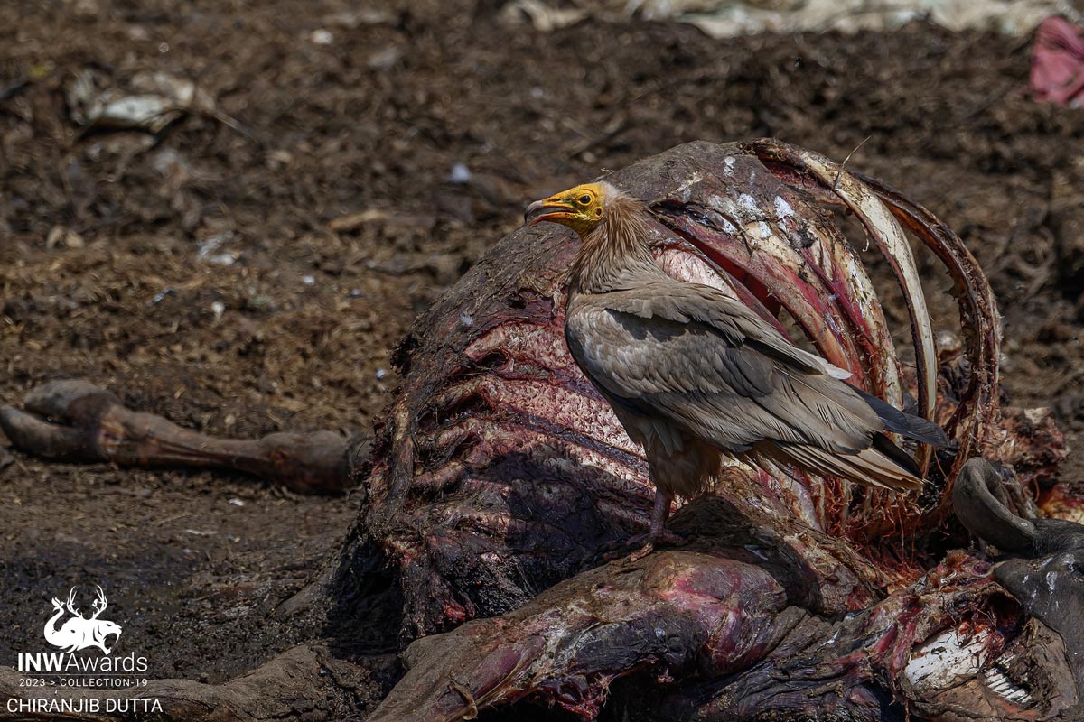 Alerted by the flying vultures and the stench emanating, while returning to Chandigarh from Punjab, we searched the place the find the wake of Egyptian vultures feeding on the carcasses. Roadside in Ropar, Punjab.