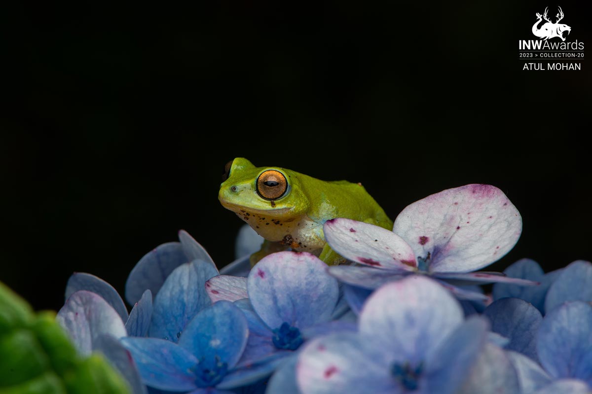 A beddomme frog, on his flower throne. Shot in August 2023 at Western Ghats.