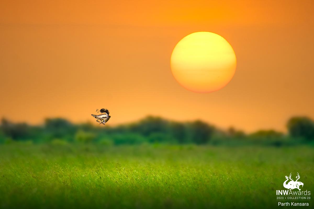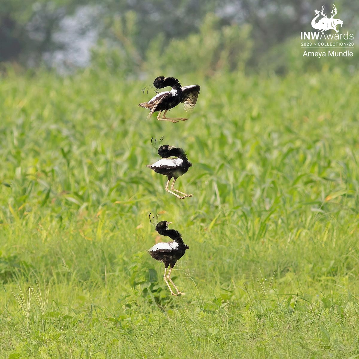 The monsoon season welcomes the breeding season of many species. This is composite image of a male Lesser Florican displaying to impress a nearby female by jumping high in the air! Image taken: Ajmer, Rajasthan