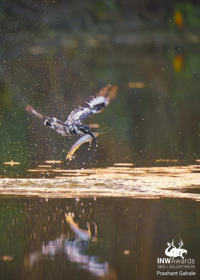 Pied Kingfisher with Fish ( Magic of Golden Light) Place - Akola Maharastra