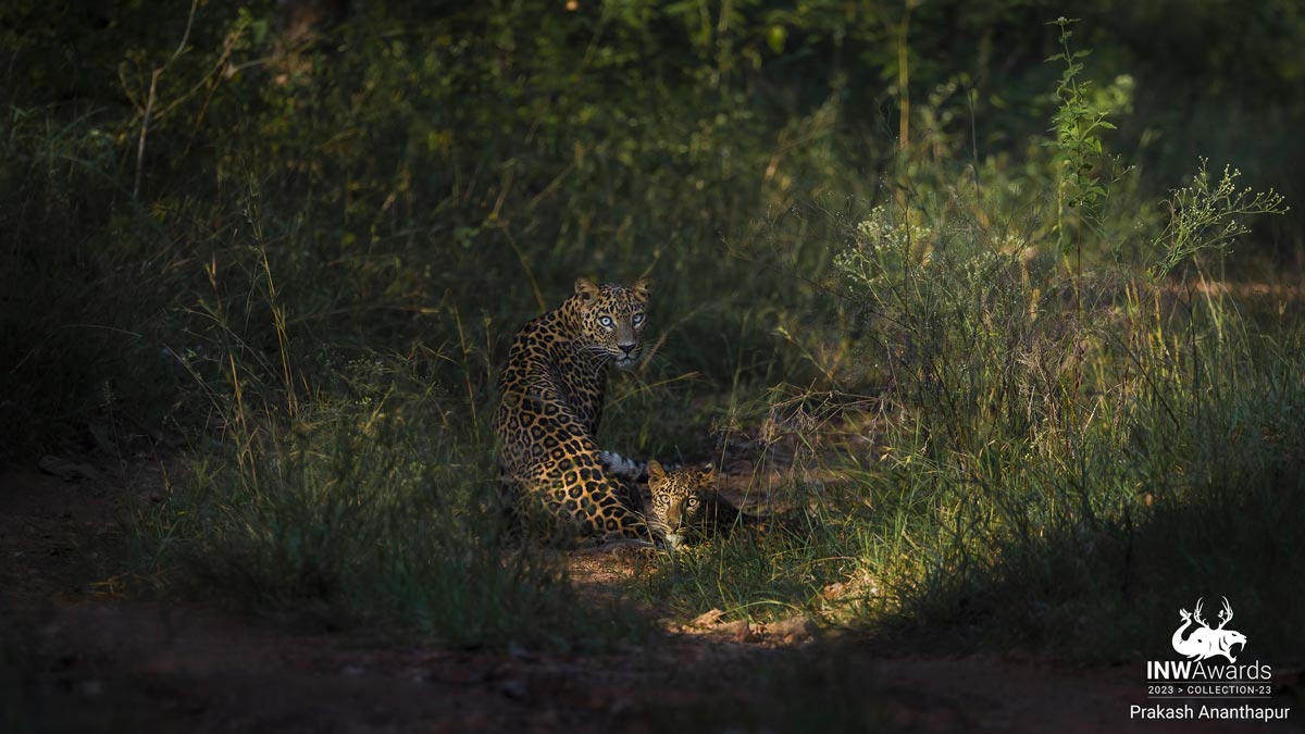 Light on the Spots - On a Beautiful Bright Winter morning at Bandipur National Forest, Karnataka, I was fortunate to witness the magic of light, capturing the magnificent spots of Mother and cub leopards. The stare at the camera of these lovely cats and the heavenly spot light makes this a frame for life.