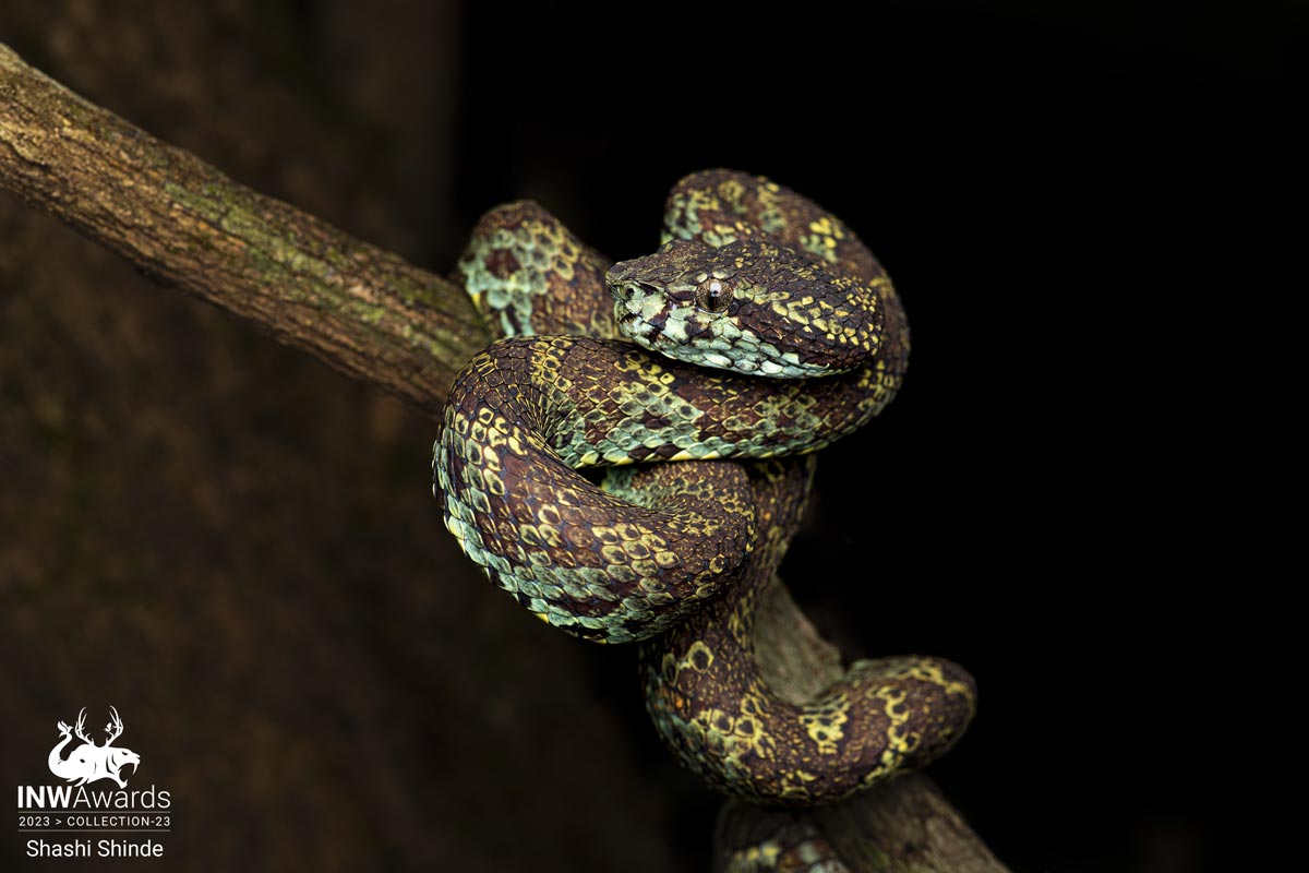 This one's seriously special for me since i was going to mistakenly hold this branch while on a Night Trail near Sawantwadi, if it was not my colleagues headlamp which for a Micro Second shined its eyes that i realized this was a Malabar Pit Viper male. This Brown Morph was so well camouflaged that you simply cant make out if its a snake or a tree branch. Even though bites from a Malabar Pit Viper isn't fatal to humans but this was a close call nevertheless.