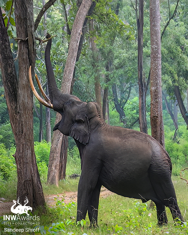 This was during my first visit to Nagarhole Tiger Reserve in Kabini in Nov 2023 after nearly 10 years. On one of our safaries we came across this huge tusker for which kabini is famous for . This big male was right on the road side , so we decided to stop . it got agitated for some time , but later went on to pull the branches of the tree and feeding on it . it also came in front of our gypsy to give us some awesome shots .This one with hugh tusk pulling the branches with ease due to its enormous power was sight to behold.