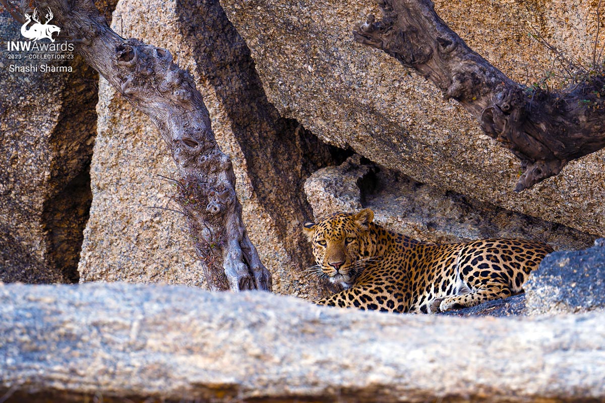 Robust male leopard resting out of his den. Image clicked at outskirts of Sadari village in Pali district of Rajasthan.