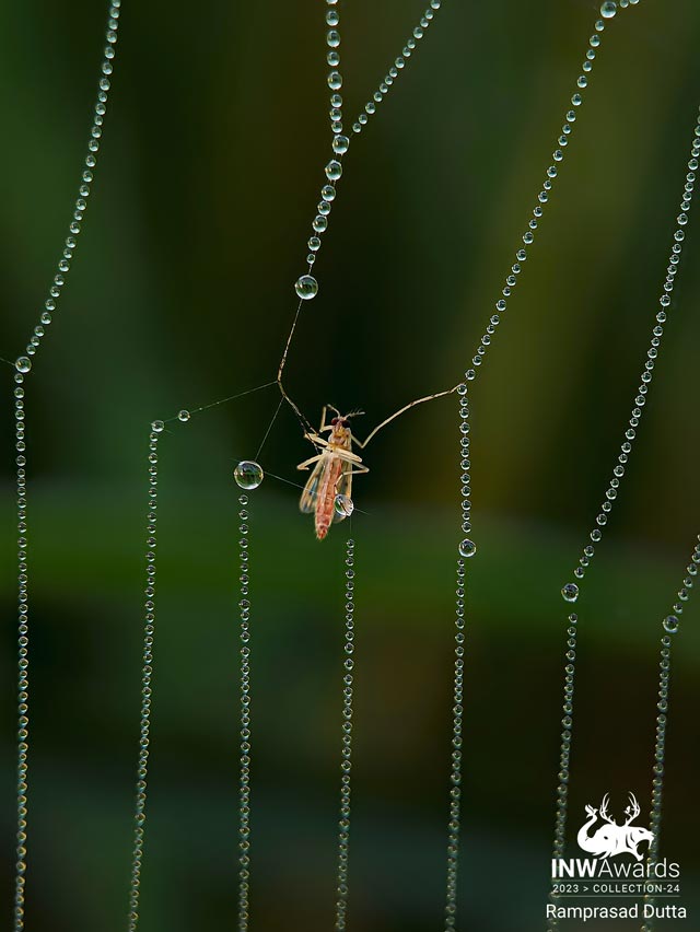The Chironomidae,commonly known as Lake Fly was shot in Bankura in early morning.The main subject is in the centre position and the water droplets are creating a few parallel lines surrounding it,what makes this frame very interesting.