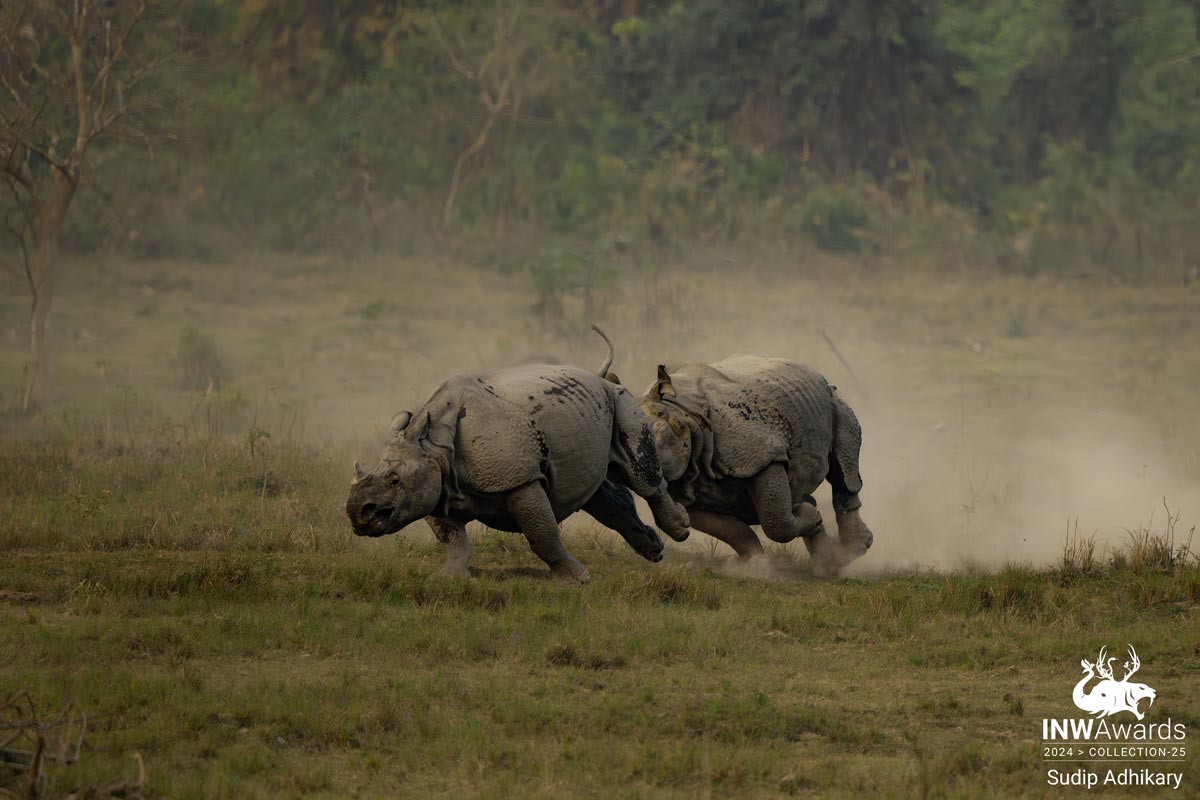 Territorial Fight among Rhinoceroses in Kaziranga National Park: Territorial fights among rhinoceroses are intense and crucial for establishing dominance and securing mating rights. These clashes often involve aggressive displays of power, such as horn clashes, vocalizations, and mock charges. Dominant males fiercely defend their territories from intruders, using their massive size and formidable horns to intimidate rivals. These confrontations can result in injuries or even death, highlighting the high stakes involved in these territorial disputes. The outcome of these battles not only determines access to resources but also plays a significant role in shaping the social hierarchy within rhinoceros populations.