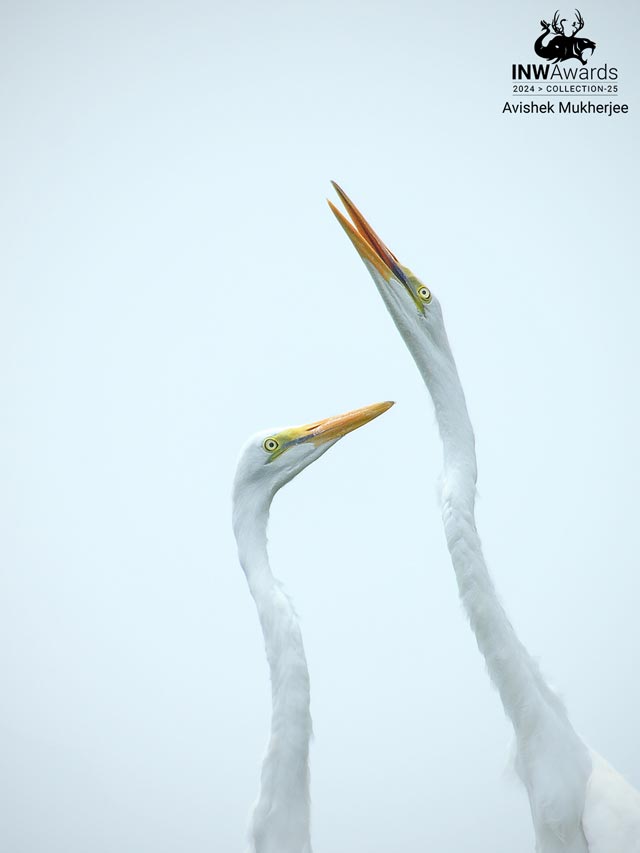 A pair of egrets showing love.