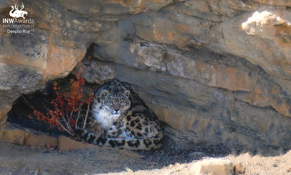 The grey ghost of the mountains, an elusive snow leopard shows its love for colour. Spiti Valley.