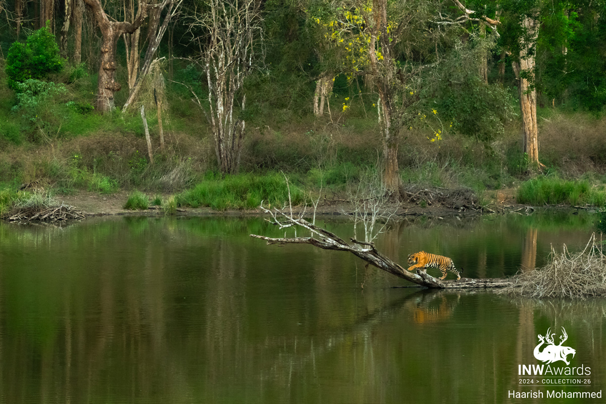 This is how i’d like to see a Tiger, in it’s natural habitat. This was a young male too young and playful. The reason this boy reached the fallen tree was to attempt catching a Cormorant which was basking on the tree. The sighting lasted for almost half an hour till the dusk. Shot at Nagarhole Tiger Reserve, Karnataka, India.