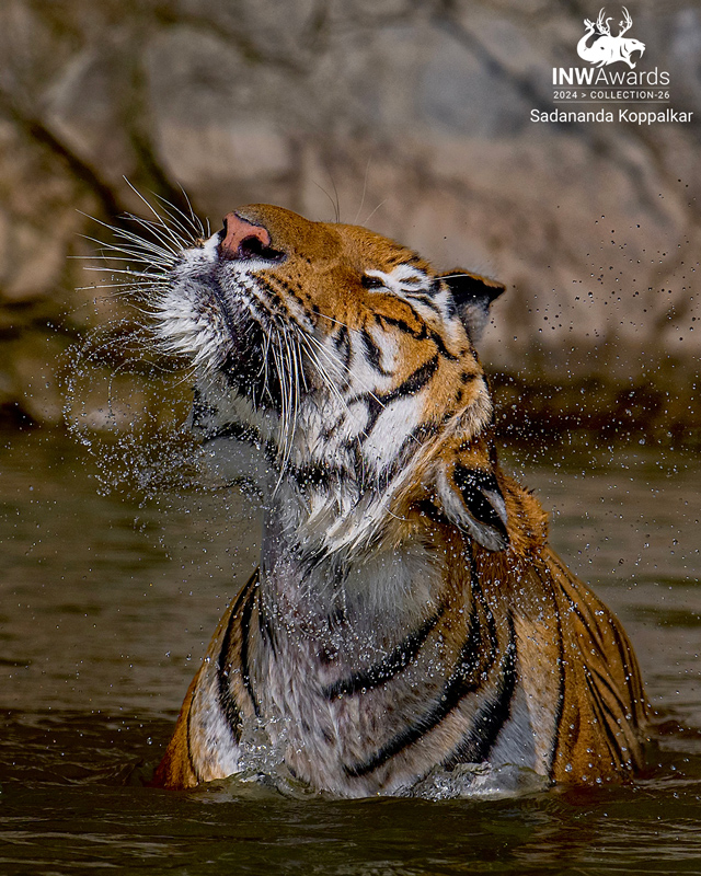 Some cooling off required even for the king of forest. Tigress shaking off the water from her body during hot summer afternoon.