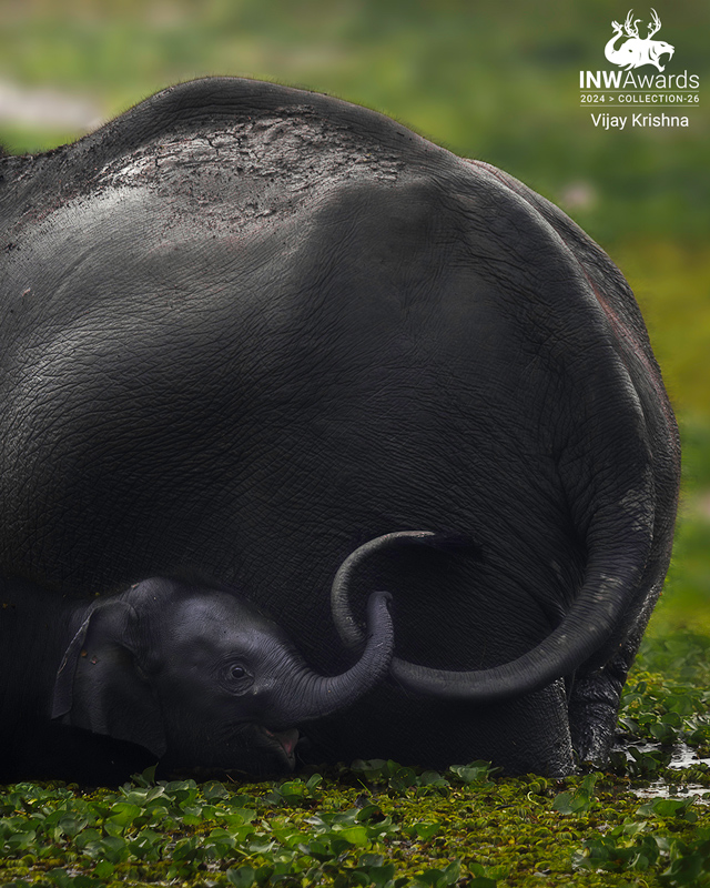 BEHIND-THE-STORY : This was one of my memorial trip to Corbett tiger reserve during summers and like some other days, it was also a normal day in my life doing wildlife photography . Generally I love big cats but that day in my heart wished to do something different and i wanted to photograph elephant with calf in evening golden hours , so i told my driver and guide. They said to me: "sir don't say like this because today we heard from lot of guides saying that tiger sight is happening and they give brilliant shots to Photographers". But i said no and told them that i just want elephant so they drove me to that area and said there is no elephant we have to go for tiger sighting but i stopped him and say we have to wait , and then the patience game started , slowly time was running out and it was very difficult to wait in one spot and due to summer temperature was 40° celsius. We waited more than 2 hours and we all were tired. They continuously said sir we should go, the elephant will not come but i had a feeling for that and finally elephant came but i was surprised that it didn't come alone. I saw elephant walking with her calf and she protected her. It was a really eye memesrising moment for me to see this after waiting so long and it was really worth to wait . Then a moment of life came when elephant was walking and that calf was between her legs only her face and Trunk were visible and then i clicked the photograph with my Nikon D500 without wasting any more time.