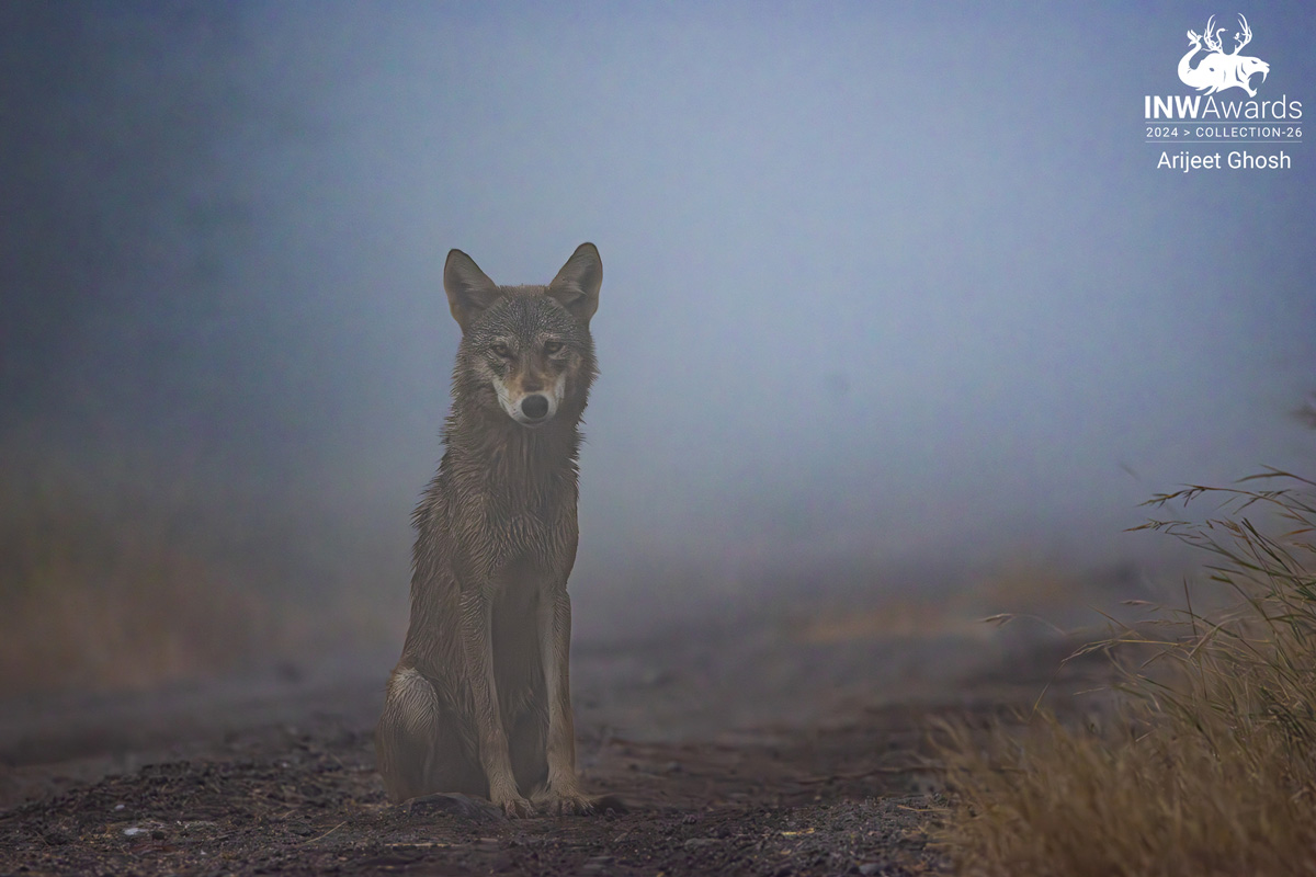 This was my first sight of the Indian Grey Wolf, a species I wanted to see for a long time! But that morning drive was unusual. There was a lot of sudden fog out of nowhere, and it showed no sign of leaving! Instead of Velavadar feels, it actually gave the feeling of a cold winter morning in Bharatpur! Despite that, my first sight of this ghost of the grassland, drenched in the wetness of cold morning, was a sight to behold!