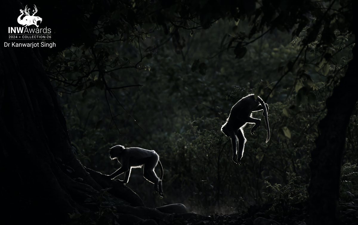 the day was getting over, we had wonderful sightings during the day, as we were exiting from the gate, I saw two sub adult langurs playing with the gentle back light of setting sun. it was the light that caught the attention and made the frame beautiful. Rajaji National Park May 2024