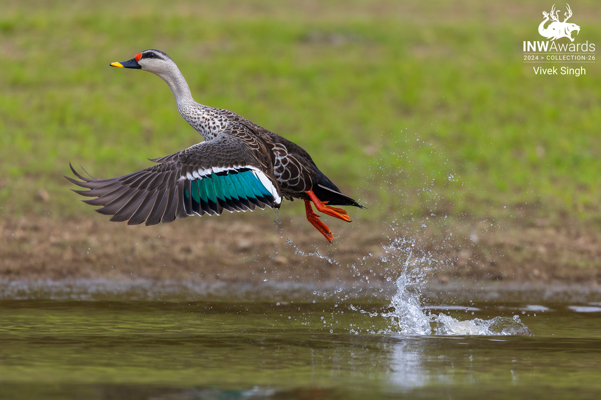 i spotted this Indian spot billed duck and realised that it was about to take off. Wanted to catch the lovely colours it has on the plumage. It was clicked in Kabini.