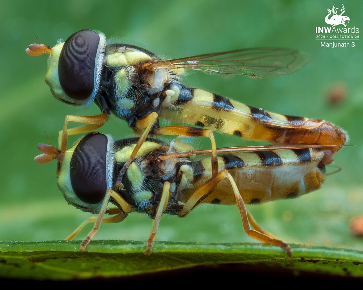 Mating pair of Hoverfly. This image was captured in the Devarayanadurga forest, Tumkur, during evening Macro Walk.