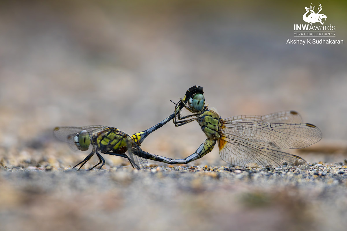 This Photograph taken from Kunnampidari Reservoir, Palakkad, Kerala. on an evening i was experimenting macro photo-shoot. surprisingly i had encounter these dragon flies while they are mating, and its called mating wheel. i had tried my best to capture in to my frame with the eye level Angle. glad to see how the image turned out.