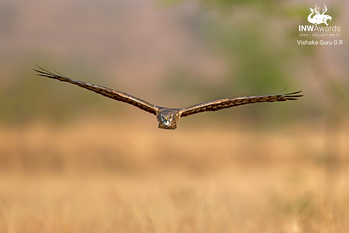 Embarking on a breathtaking journey at Bhigwan, I witnessed a remarkable scene unfold. The stealthy Montague Harrier, with its keen eyes and swift movements, orchestrated a daring theft, snatching a Sandgrouse bird’s egg for its evening delight. The harrier’s agility and precision were on full display as it executed this bold act. As if aware of my presence, the harrier paused, its piercing gaze meeting mine through the lens, creating a moment of profound connection. The bird then perched gracefully, preparing to savour its stolen prize. The evening light cast a golden hue over the scene, highlighting the harrier’s sleek feathers and the delicate egg. The backdrop of Bhigwan’s serene landscape, with its rich tapestry of colors and textures, framed this extraordinary encounter. This image captures not just a moment of predation, but a story of survival, cunning, and the raw beauty of nature. It’s a testament to the intricate and often harsh realities of the wild, making this experience truly unforgettable.
