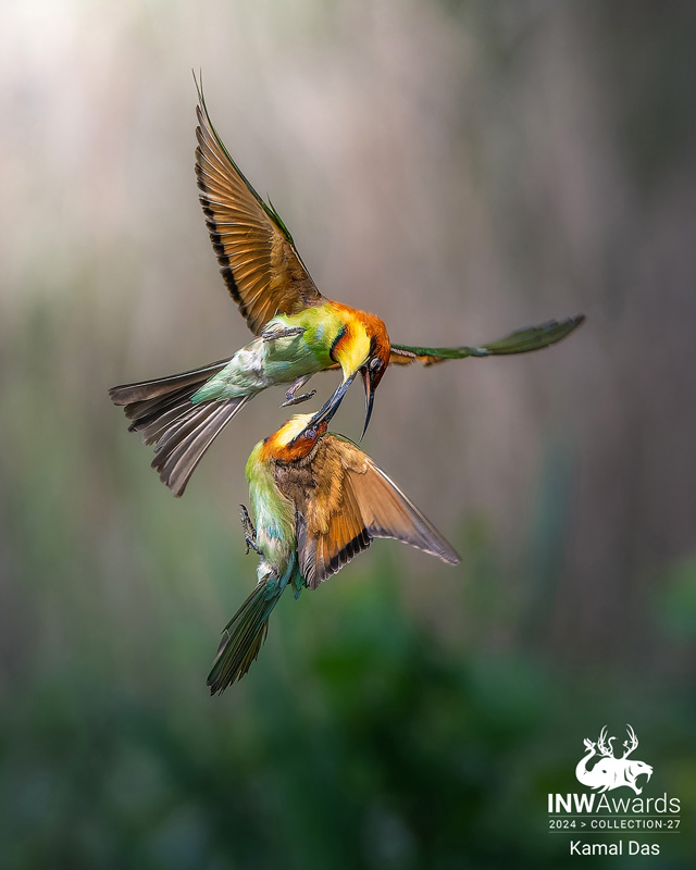 1st image details:: During a winter birding trip to Kaziranga national park in April 2024, Me and my wildlife partner patiently waited for some portrait shots of the pride of Assam, one horned Rhino. Suddenly our guide pointed to some disturbance in nearby bushes. We pointed our camera towards it. Indeed, it was a disturbance. Disturbing the silence of the Jungle were a pair of one of my favourite birds, Bee eaters. Fighting for the territory or maybe for the right to mate with the female, they displayed some acrobatics and gave us the opportunity to capture some actions. As they say, Life is not what you expect, it is made up of the most unexpected twists and turns. We made the moment count and finally my dream come true.