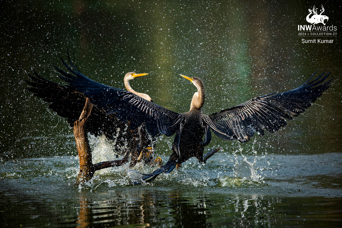 Clicked this picture at Bharatpur Bird Sanctuary. I was clicking oriental darters catching the fish, and suddenly these darters started fighting for their territory.