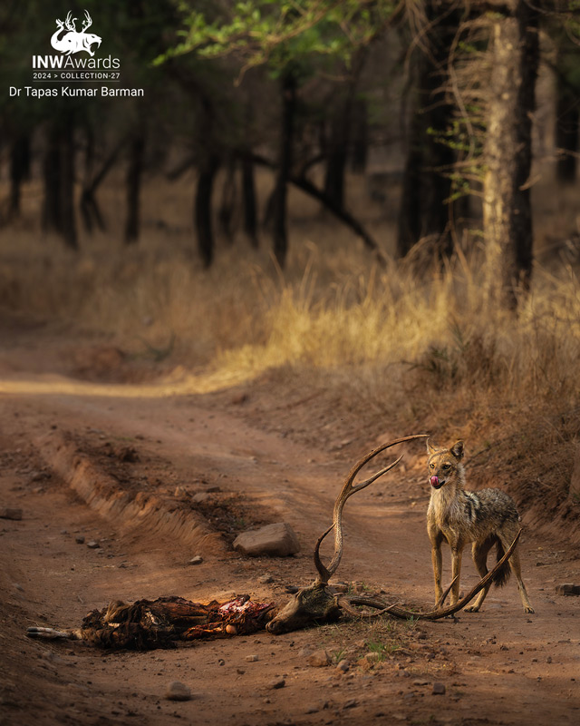 The silent hunt In the heart of Ranthambore National Park, a scene unfolded quietly. The deer had fallen victim to the circle of life, its fate sealed in the natural order of predator and prey. A lone jackal approached cautiously, keen eyes assessing the situation and wasted no time. With nimble movements, it darted forward and sank its teeth into the soft flesh of the deer.