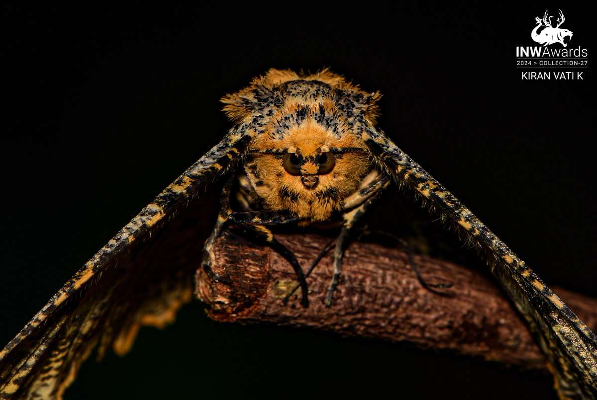 A moth, exhausted from the rain, rested on a bark. As the sun came out, it stretched its wings and was ready to fly away. Place: Mangalore (Kadri park). The photo was clicked in the morning at around 10 am.