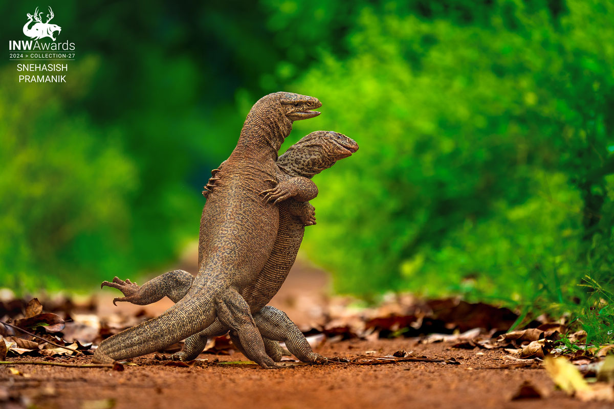 The image is showcasing a most interesting display of territorial fight of Bengal Monitor Lizard, while it seems like they are lovemaking or hugging each other. In their breeding season they usually fight like this for capturing specific territory. I was lucky that day to witness this moment in front of my eyes. I was returning home after a weekend birding session, suddenly i saw something moving on muddy road. After getting close I was shocked to see this in front of my eyes, and took out my camera gear as soon as possible and lay on the ground, crawled to get bit closer and after proper background I captured a whole sequence. Shot at Howrah district of West Bengal. Shot with Sony A7iv and 200-600g Oss lens.