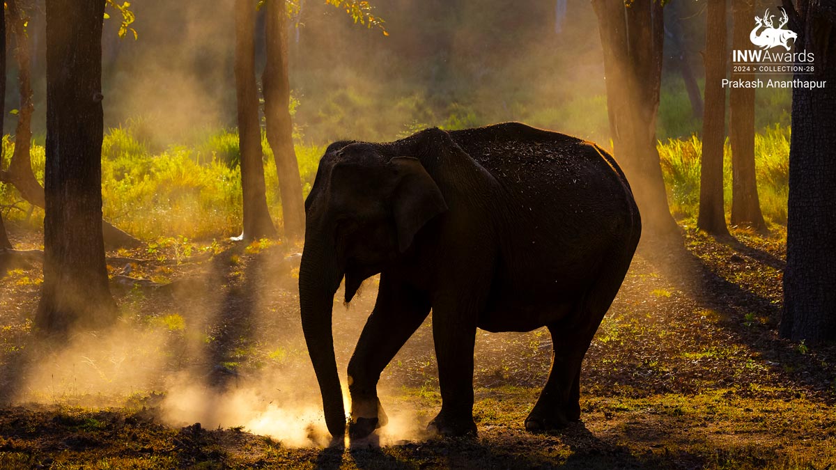 Evening Grazing : As the golden evening lights sets on this beautiful nagarhole forest in Karnataka, the giant grazer of the forest plucks the grass and the dust, forming a beautiful frame.