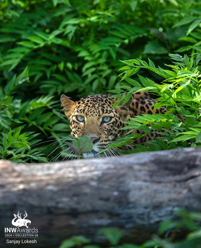 Sub-adult Leopard from Bandipur Tiger Reserve. The stare tells you all about the curiosity in which this leopard was looking at us. At first we did not see the leopard which was hidden behind the fallen wooden log but all of the sudden the head pops up and within few seconds of the leopard staring at us, just vanished behind the bush like a ghost. It was unbelievable experience to see a leopard in its habitat.