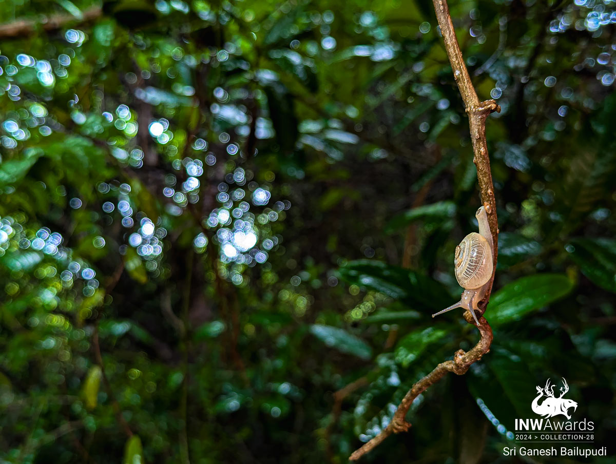 Nature has a way of surprising us when we least expect it. This story is a testament to that. On a cloudy morning, we set out on an expedition to photograph a specific bird species. Everything was meticulously planned—arriving at the location on time, setting up equipment, and patiently waiting for the perfect shot. But, as if nature had its own agenda, the skies opened up, and a downpour began. Seeking shelter, we stumbled upon a small Ganesha temple and waited for the rain to subside. With time on our hands, we turned to a casual game of testing our phone cameras. That’s when a little marvel of nature caught our attention: a tiny snail, precariously perched on a slender branch, hanging under the dense canopy. The light was sparse, filtering softly through the leaves, creating an otherworldly ambiance. "In the right light, at the right time, everything is extraordinary." And this moment proved just that. We experimented with macro photography on our phones, and the result was nothing short of stunning. The interplay of the backlit snail, the intricate bokeh, and the delicate framing brought the scene to life. It was as though nature whispered, “Here’s a masterpiece for your patience.” What began as a quest for birds turned into an unexpected celebration of small wonders. This image, captured with a Google Pixel, stands as a reminder that “Nature never disappoints; it always finds a way to surprise.” Sometimes, the unplanned detours lead us to the most magical destinations.