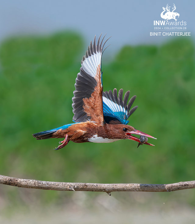 This image of White Throated Kingfisher was shot at Purbasthali wetlands, Bardhaman, West Bengal during Jan 2024. These kingfishers have brilliant fishing skills. In this frame I have tried to freeze the moment of the kingfisher carrying its catch away from the prying eyes.