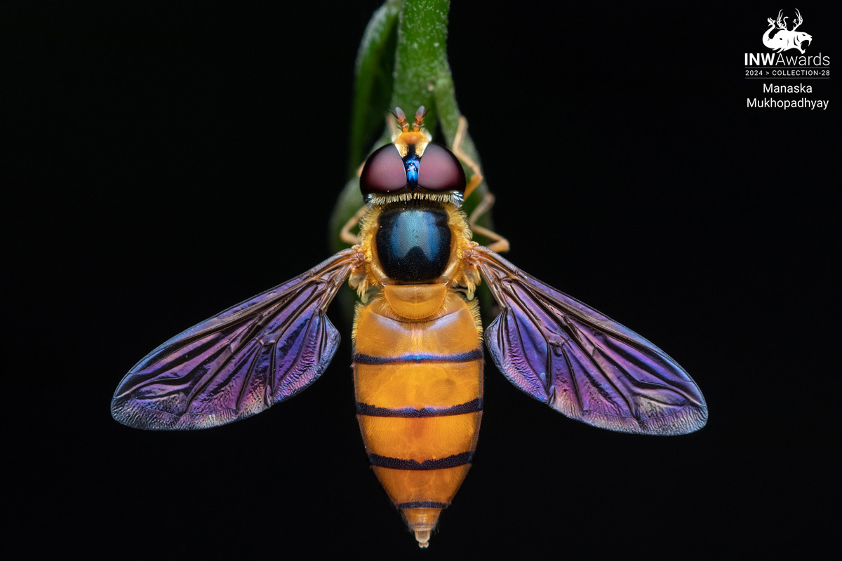 Hoverflies are one of the most common yet beautiful creatures that can be found throughout the world on all continents except Antarctica. I found this amazing Black-banded Hoverfly (Asarkina sp.) in my local forest named Chintamani Kar Bird Sanctuary, Kolkata.